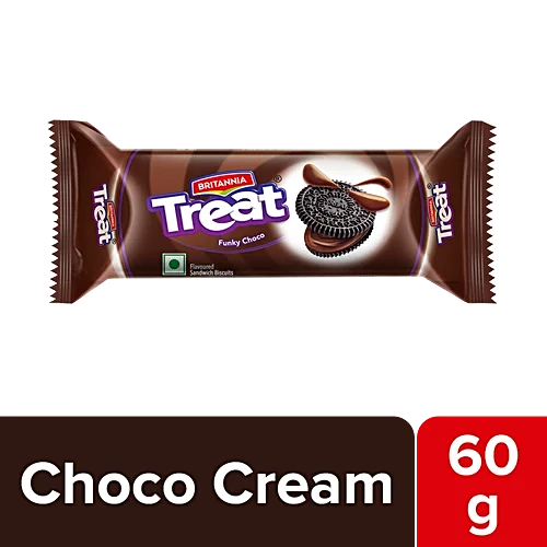 Britannia Treat Choco Crème with choocolatee Biscuits are packed with delicious choco crème to delight kids. The smooth filling inside is so soft and lickable, making these biscuits irresistibly tasty.