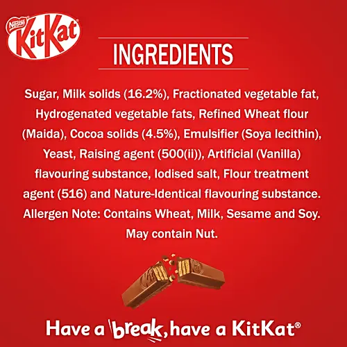 Nestle Kitkat is the ideal partner for your breaks. The iconic Kitkat taste and texture with the crispiness of the wafer bar will delight your senses and make your breaks delicious. Indulge in this delicious crispy treat alone or share it with your loved ones. Just unwrap your Kitkat, break off one of the fingers, snap it into two and enjoy! Have A Break, Have A Kitkat.
