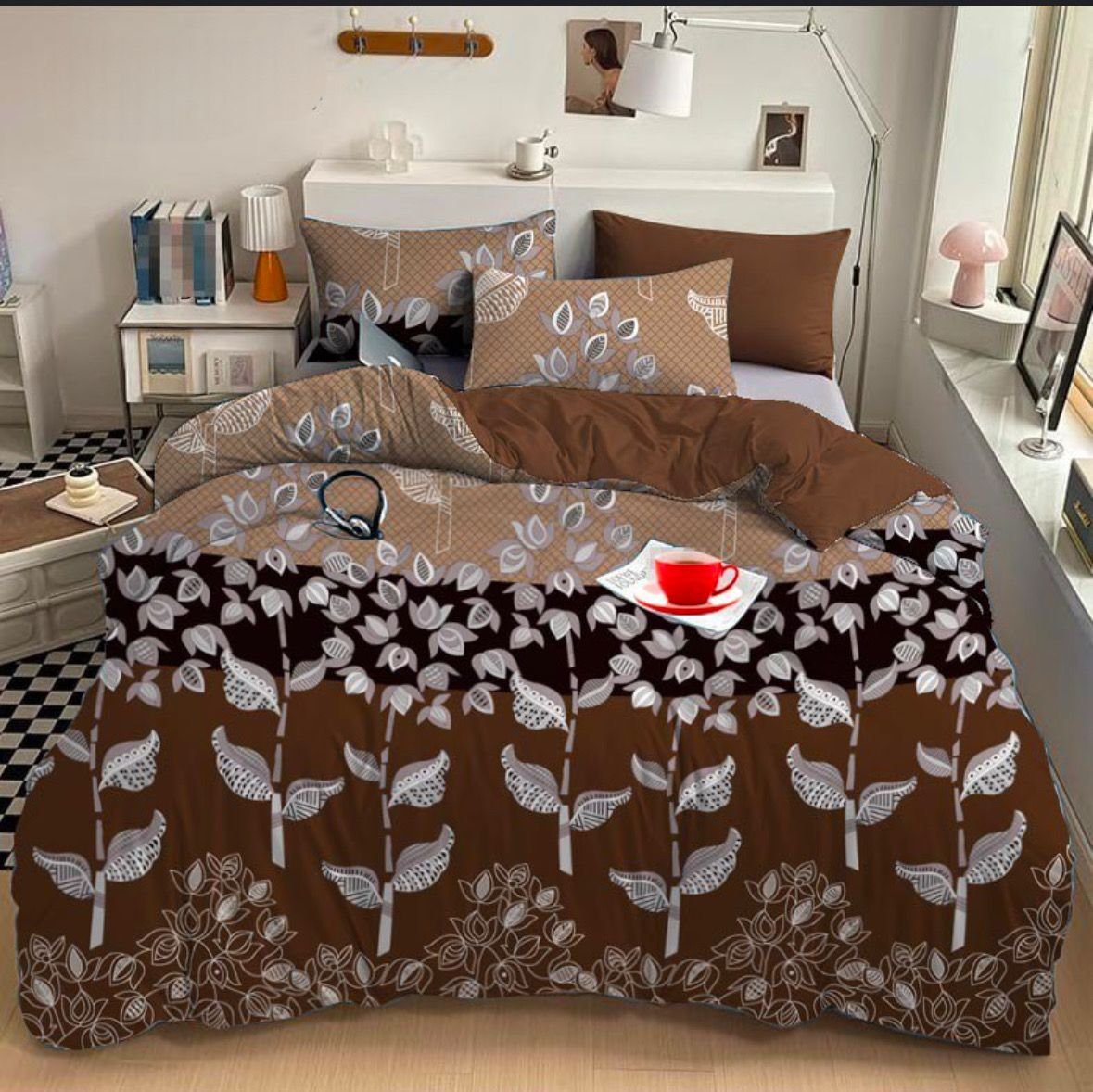 Be the first to review “Sky Tex Brown Color 3D Leaves Printed Cotton 160 TC Jointless Super King Size Double Bed Sheet with 2 Pillow Covers”