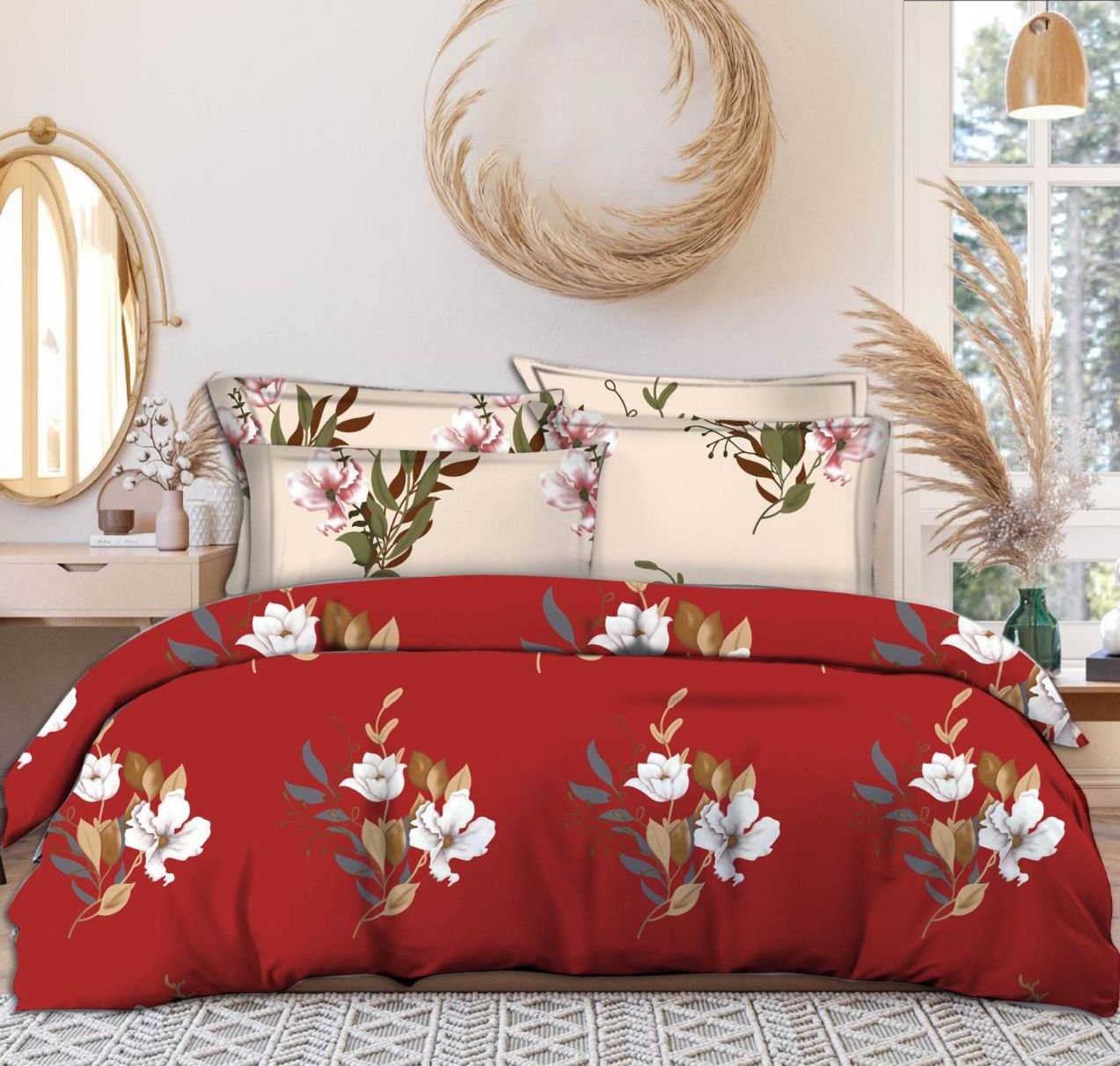 • Stylish red floral pattern adds elegance to any bedroom décor
