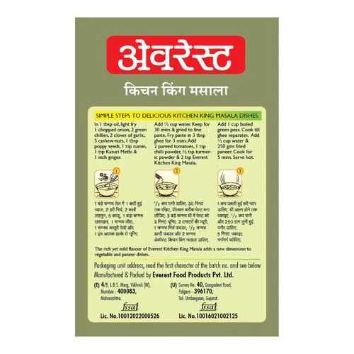 Paneer curries and light gravies are enhanced with the fragrance and taste of Everest Kitchen King.