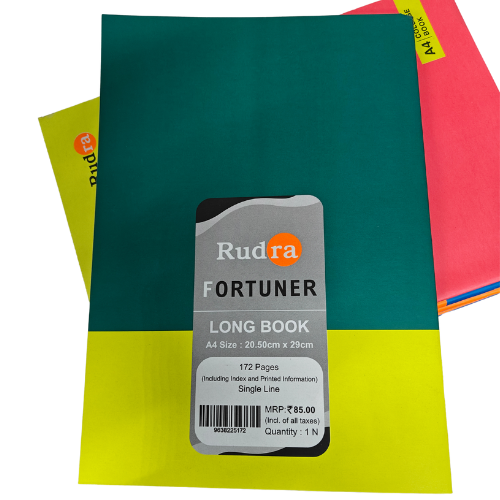Experience premium writing comfort with the RUDRA FORTUNER A4 Notebooks. This value pack of 12 notebooks features 172 ruled pages each, offering ample writing space for notes, ideas, assignments, or records. The generous A4 size (20.5 cm x 29 cm) gives you more room per page, making it ideal for both students and professionals.