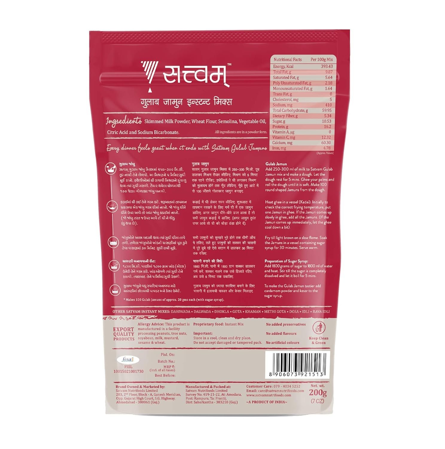 - Authentic Flavor: Indulge in the authentic taste of traditional Indian dessert with Satvam Gulab Jamun Instant Mix. Each bite is a burst of rich, sweet flavor reminiscent of homemade Gulab Jamuns.