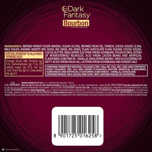 Sunfeast Dark Fantasy Bourbon, Classic Biscuit Made With Real Chocolate