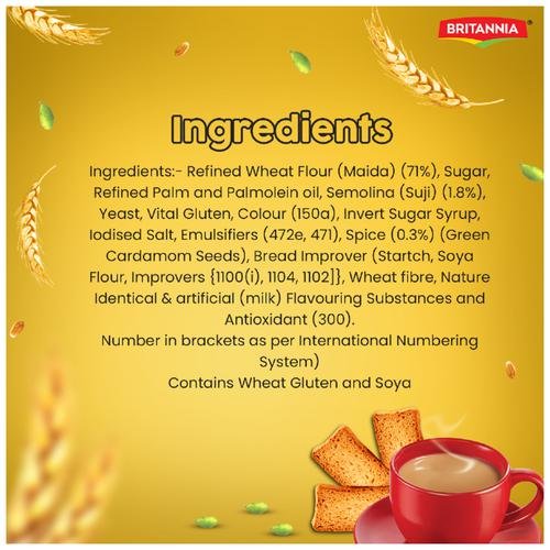 Britannia Toastea Premium Bake Rusk with the goodness of wheat has been a traditional tea companion and is loved by many. It is as crispy as your traditional rusk but with a hint of cardamom and the right amount of sweetness; its taste will leave you amazed. Britannia Toastea Premium Bake Rusk has long been a part of every home, sharing those moments of joy.